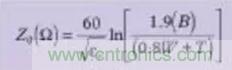用于带状线的特征阻抗计算公式如(公式七)所示: