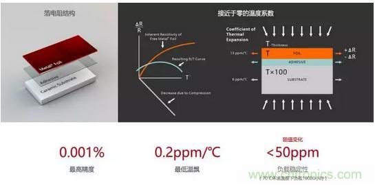 图1:Vishay公司金属箔电阻的结构及性能
