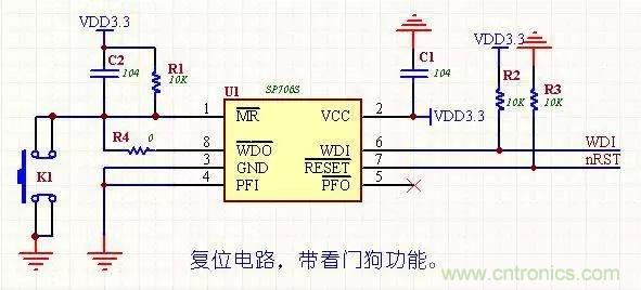 带看门狗和手动复位,价格便宜(美信的贵很多),R4为调试用,调试完后焊接好R4。