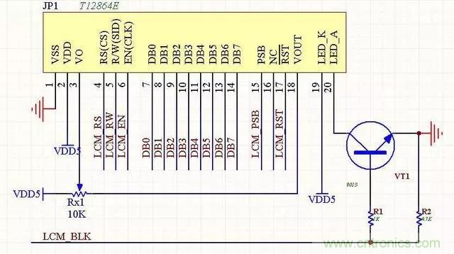 7、LCM12864液晶??椋⊿T7920)本电路是常见的12864电路,价格便宜,带中文字库。可以通过PSB端口的电平来设置其工作在串口模式还是并行模式,带背光控制功能。