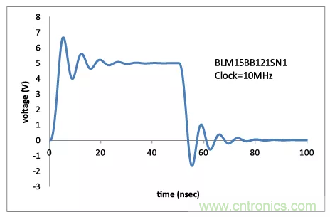 图2:片状铁氧体磁珠造成过冲和下冲的示例