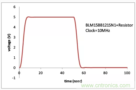 如果在数字电路中使用铁氧体磁珠,则可能会发生波形中出现过冲和下冲的情况。(图2)