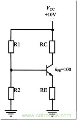 R2 = 1.4KΩ,R1 = 10KΩ,Rc = 1KΩ,Re = 100Ω;