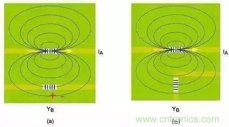 对电路B的方向进行调整,使其电流环路平行于电路A的磁力线。为达到这一目的,尽量使电感互相垂直。