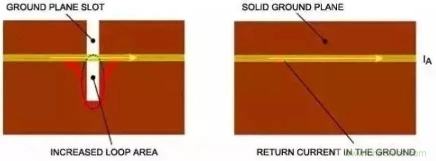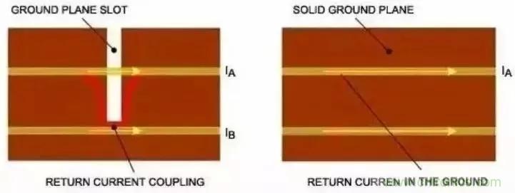 图7:尽可能保持地层完整,否则返回电流会引起串扰