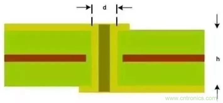 图5:PCB横截面用于估算寄生影响的过孔结构