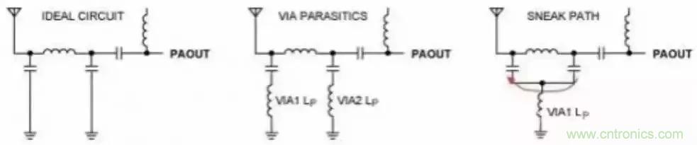 应遵循原则:确保对敏感区域的过孔电感建模;滤波器或匹配网络采用独立过孔;较薄的PCB覆铜会降低过孔寄生电感的影响。