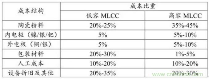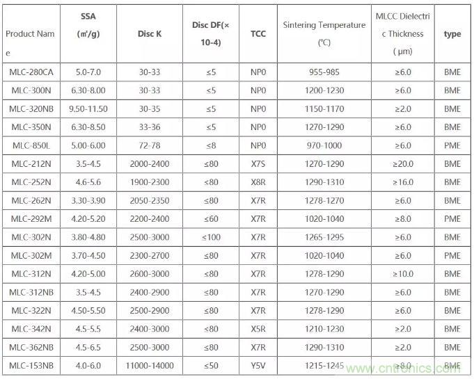 目前,MLCC的主要原料是钛酸钡、氧化鈦、钛酸镁、钛酸镁等,形成COG、Y5V、X7R、NPO等种类,依电气特性应用各不相同决定MLCC的特性,来决定不同的烧结温度与烧结气体。此外,从MLCC成本结构角度,瓷粉在整个MLCC中成本占比较大,尤其是高容MLCC的生产,高容MLCC对于瓷粉的纯度、粒径、粒度和形貌有严格要求。