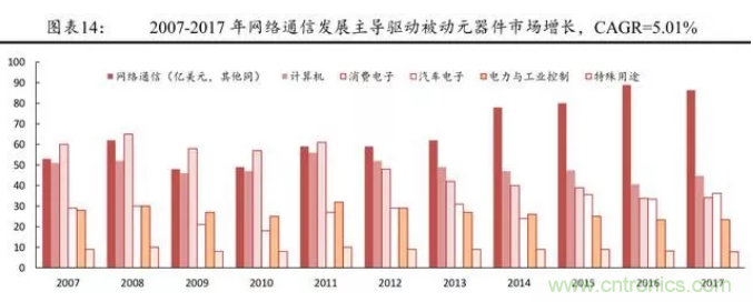 下游终端应用市场显著引导着 MLCC 所属的被动元件市场发展。