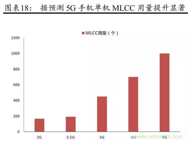 另根据 Kemet 数据,iPhoneX 单部手机对 MLCC需求量超过 1000 只,而 iPhone 6S 对 MLCC需求量为 500 只左右。随着 OPPO、VIVO、小米、华为等逐步专注于生产中高端机型,有望推动上游 MLCC 需求获得持续较快的增长。