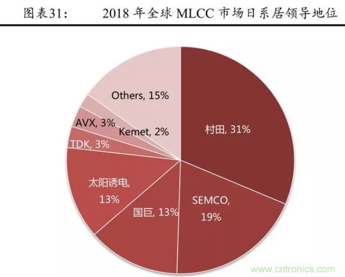 2018 年全球排名前六的企业分别为村田、三星电机、太阳诱电、 国巨、风华高科、TDK,前六大厂商占据近 80%市场。