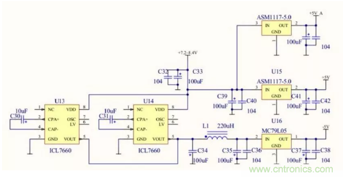通常我需要使用负电压时一般会选择使用专用的负压产生芯片,但这些芯片都比较贵比如ICL7600,LT1054等等。哦差点忘了MC34063了这个芯片使用的最多了,关于34063的负压产生电路我这里不说了在datasheet中有的。下面请看我们在单片机电子电路中常用的两种负压产生电路。