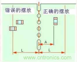 第一就是与切割方向平行(使器件的机械应力均匀,比如如果按照上图左边的方式来摆放,在拼板要拆分时贴片两个焊盘受力方向不同可能导致元元件与焊盘脱落)
