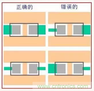 元件焊盘两边的引线宽度要一致