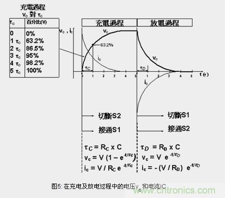 电阻值R和电容值C的乘积被称为时间常数τ,这个常数描述电容的充电和放电速度,见图5。