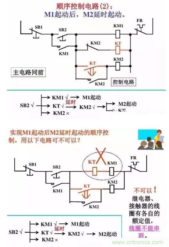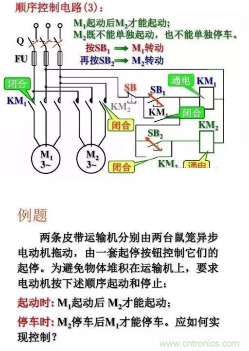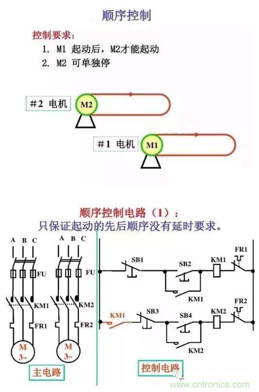 【导读】在电气控制电路里,顺序控制也是应用很广泛的电气控制电路,经常被用在传送带,工业流水线,机械手等控制当中,关于顺序控制电路,简单一句话就说明原理:一个接一个的启动,全部停止或者一个接一个的停止,今天我们就重点来看一下顺序控制电路和具体实例。