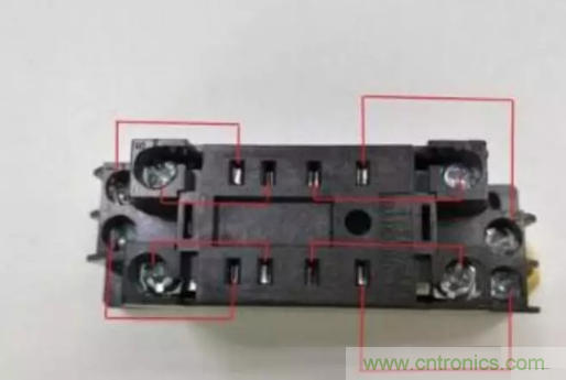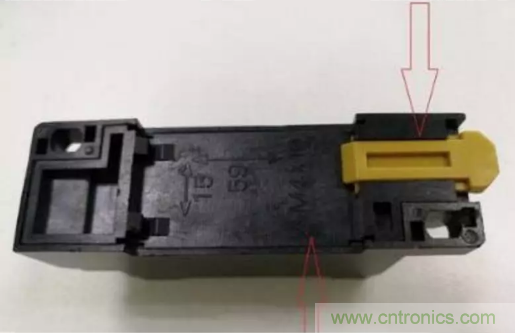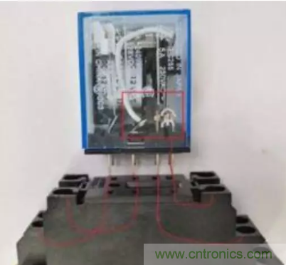 2、还有一个技巧就是在弹簧卡位方向就是线圈供电!这样辨别后,我们开始通根据继电器规格要求的电压开始通电,判断正确就可以听到塔塔的吸合声,正负极接对里面的LED还会亮!