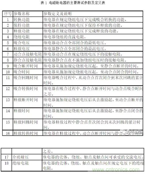 为保证继电器的质量,表1所列参数都应严格进行测试,但其中有些参数的测试特别需要引起我们的注意。