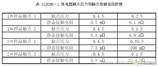 由表2数据可以得知,随着触点压力的衰退,触点间的静态接触电阻明显变大。