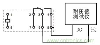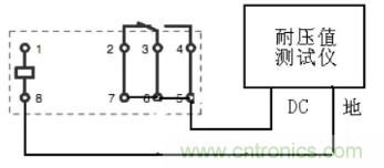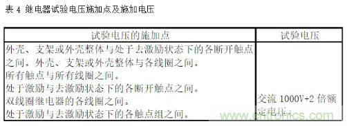 介质耐压(俗称打高压)是考核继电器的壳体、绕阻、触点及触点间在规定的时间内承受规定交流电压的能力。而绝缘电阻是考核继电器的壳体、绕阻、触点及触点间在效加规定直流电压的条件下体现出来的绝缘电阻。国军标规定的试验电压施加点见表4。