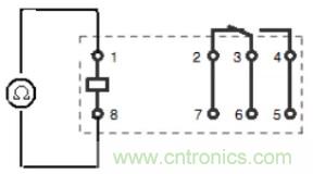 a、内阻测试:测试继电器1、8脚间的阻值大小,如图示