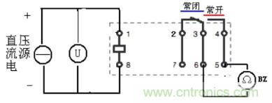 a、最低闭合电压测试:直流电源供电从0V开始供电,电压逐渐调高,直至蜂鸣档告警,记录当前电压值U1。(保持直流电压当前供电值)