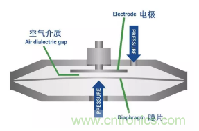 简单地说,这些压力传感器是一种电容器,一种具有充电能力的装置。当压力作用到传感器内部的膜片上时,膜片就会收缩,或向固定电极弯曲,并改变电容。这种物理变化会导致电子输出的变化,该装置可将压力读数转换成电流或电压值。