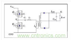 此外,如果MOSFET的寄生输出电容C1和C2与Cr的容值相当,则谐振频率fr也会受到器件的影响。正是由于这个原因,在设计过程中,选择Cr值大于C1和C2,可以解决这个问题,使fr值不受所用器件的影响。