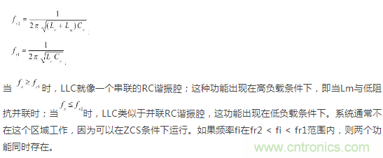 在一个谐振单元中,当输入信号频率(fi)等于谐振频率(fr)时 - 即当LC阻抗为零时,增益最大。谐振转换器工作频率范围是由两个特定的谐振频率值界定,这些频率值与电路有关。驱动控制器设定MOSFET的开关频率(fs)等于电路谐振频率,以保证谐振的重要优势。