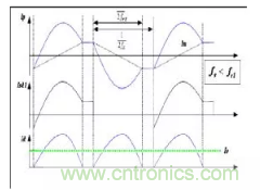 如果MOSFET开关频率fs小于fr1,功率器件上的电流的形状会改变。事实上,如果持续时间足以在输出二极管上产生不连续的电流,则原边电流形状会偏离正弦波形。