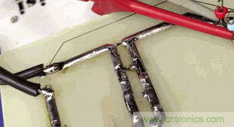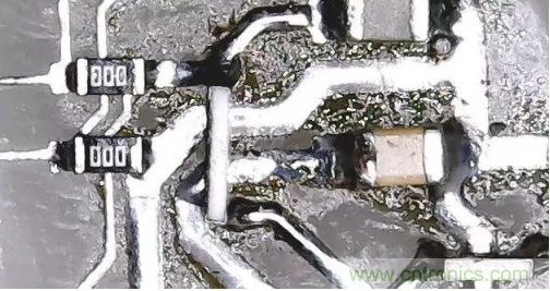这说明电阻的温度也急剧增加,导致功耗也大幅度增加。0603电阻在电流增加到11.5A时烧毁,0805电阻在电流增加到12A时烧断,1206的电阻在12A时没有烧毁。