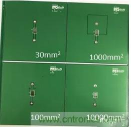下面分别以一块10cmX10cm、2OZ覆铜的二层PCB板来做试验,板厚1.5mm,PCB底层覆铜没有通过过孔连接到顶层,将封装为DFN5*6器件AON6152焊接在PCB板,同时AON6152的D极下面分别铺设四种不同尺寸的铜皮:30mm2、100mm2、1000mm2、10000mm2。然后给四块板的AON6152灌入相同的功率,测量AON6152的温升,计算相应的热阻RJA。将AON6152灌入功率减小一半,重复上面的实验,测量其温升,再次计算相应的热阻RJA。