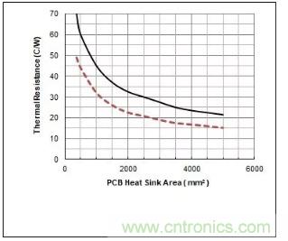 (2)增加PCB板覆铜的厚度可以明显的降低热阻,但是厚覆铜会增加PCB的成本。