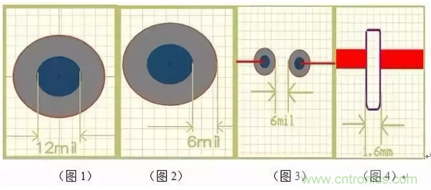 2、最小过孔(VIA)孔径不小于0.3mm(12mil),焊盘单边不能小于6mil(0.153mm),最好大于8mil(0.2mm) 大则不限(见图3)此点非常重要,设计一定要考虑。