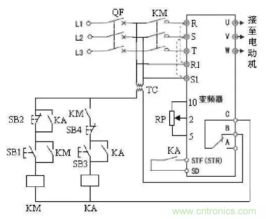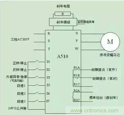 2、由于控制电路的频率输入信号是微小电流,所以在接点输入的场合,为了防止接触不良,微小信号接点应使用两个并联的节点或使用双生接点。