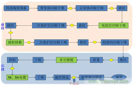 【制造方式】阻值码油墨印刷 烘干 烧结