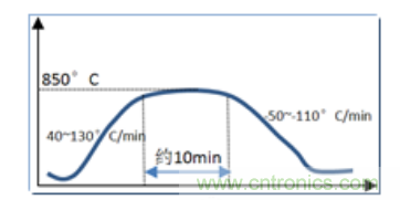 Ag/Pd膏—> 140°C /10min,将Ag/Pd膏中的有机物及水分蒸发—> 850°C /35min 烧结成型