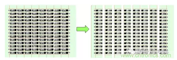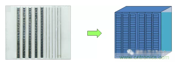 【制造方式】用折条机按照基板上原有的分割痕将基板折成条。