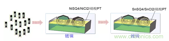 原理:先进行预热,预热温度110°C ,然后利用真空高压将液态的Ni溅渡到端面上,形成侧面导体。Ni具有良好的耐腐蚀性,并且镀镍产品外观美观、干净,主要用在电镀行业。