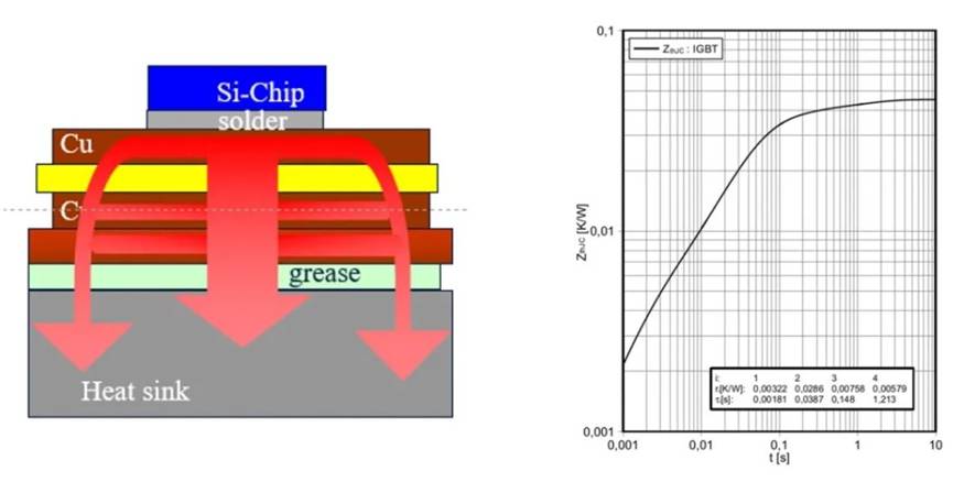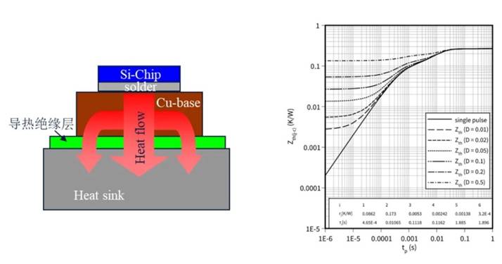 功率半导体结对壳的瞬态热阻抗Zthjc会在数据手册中给出,功率半导体常见的封装为带铜基板功率??椤⒉淮宓腄CB??楹突谕蚣芙峁沟牡ス埽捎诖韧返牟牧喜煌?,材料重量体积不同,所以瞬态热阻抗Zthjc不同。