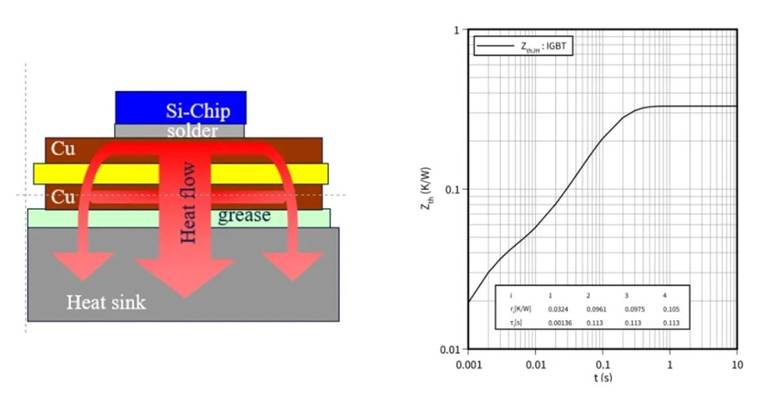 利用热阻Rth和热容Cth,可以构建一个类似RC低通电路的热模型,可以用瞬态热阻或热阻抗Zth表示这种模型,且每一个实际对象都具有热阻和热容。