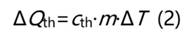 热量Qth可以由比热容cth、质量m和温差ΔT得到,即: