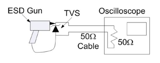 比较?;ざ芮坏缪沟姆椒ㄊ鞘褂檬静ㄆ鹘厝?ESD 事件期间二极管两端的实际电压波形。这是通过测试设置来完成的(参见图 2)。