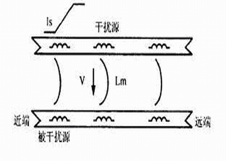 信号在传输通道上传输对相邻的传输线上引起两类不同的噪声信号:容性耦合信号与感性耦合信号,如图2、图3所示。容性耦合是由于干扰源(Aggressor)上的电压(Vs)变化在被干扰对象(Victim)上引起感应电流(i)通过互容Cm而导致的电磁干扰,而感性耦合则是由于干扰源上的电流(Is)变化产生的磁场在被干扰对象上引起感应电压(V)通过互感(Lm)而导致的电磁干扰。