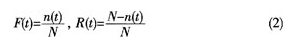 产品在一定时间内的可靠度和累积失效概率可以通过大量试验来确定。例如取N个产品进行试验,若在规定时间内有n个失效,则: