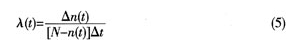 失效密度用来反映产品在全部工作时间失效的分布情况。产品工作到t时刻后,在单位时间内失效的概率称为失效率λ(t),可用下式表示: