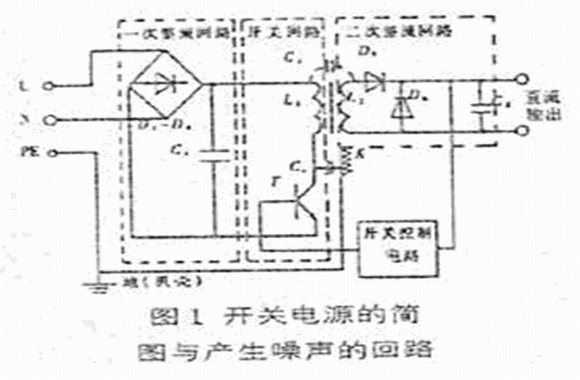 开关电源利用半导体器件的开和关工作,并以开和关的时间比来控制输出电压的高低,由于其通常工作在20KHz以上的开关频率工作,开关电源内的dv/dt、di/dt很大,产生严重的浪涌电压、浪涌电流和其它各种噪声。图1是典型的开关电源的简图和产生噪声的回路,含有大量高次谐波的噪声通过闭台回路向空间辐射电磁能量,即差模电流的辐对干扰。通常的闭合环形回路的形状都是不规则的,这里我们只讨论一般的模型,如图2所示。