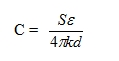 (7)上式中,电容C的单位为法拉,ε为介电常数(在真空中为1),S为带电物体与参照物体之间电力线互相照射的面积(与电场垂直,单位米2),在国际单位制中k = 9×109牛顿•米2/库仑2,d为带电物体到参照物的有效距离(单位米)。