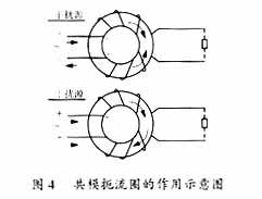 对开关电源二根进线而言,存在共模干扰(二根线上受干扰信号相对参考点大小、方向相同)和差模干扰(二根线上受干扰信号相对参考点大小相等、方向相反)。共模扼流圈如图4所示。