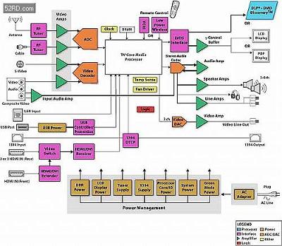 ■VideoDecoder:传统NTSC/PAL/SECAM等TV信号采取复合波形输入,VideoDecoder内含梳形滤波器(Combfilter)功能,可以将复合端子(Composite、CVBS)、S端子或色差端子(YpbPr/YUV)所输入的模拟信号分离,内含多组ADC将它转换为数字信号。